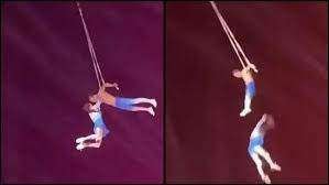 அக்ரோபேட் என்ற அந்தரத்தில் சாகசம் செய்யும் நிகழ்ச்சிகள் சர்க்கஸில் நடப்பது உண்டு என்பதும் ஆனால் கீழே வலை வைத்து பாதுகாப்புடன் நடத்தப்படும் என்பதும் தெரிந்ததே. ஆனால் சீனாவில் உள்ள சர்க்கஸ் லைவ் ஷோவில் கணவன் மனைவி இருவரும் அந்தரத்தில் அக்ரோபேட் சர்க்கஸ் சாதனை செய்து கொண்டிருந்த போது ஏற்பட்ட விபத்தில் பெண் ஒருவர் பரிதாபமாக பலியானார்.