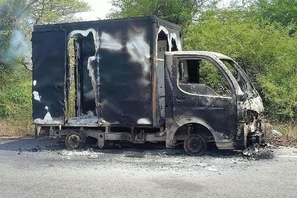 மன்னார் முருங்கன் காவல்துறை பிரிவுக்குட்பட்ட இசைமாலைத்தாழ்வு பகுதியில் இன்றைய தினம் புதன் கிழமை வாகனம் ஒன்று முழுமையாக பற்றியெறிந்த நிலையில் சாரதி மற்றும் உதவியாளர் தெய்வாதீனமாக உயிர் தப்பியுள்ளனர் .