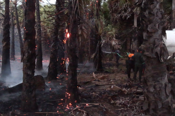 கட்டைக்காடு ராணுவ முகாமிற்கு முன்னால் காணப்பட்ட நூற்றுக்கணக்கான பனை மரங்களே இவ்வாறு திடீரென தீப்பற்றி எரிந்தது.