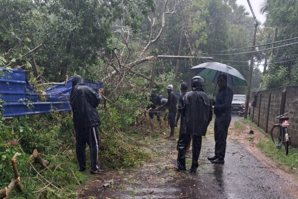 தகவல் அறிந்து விரைந்து செயற்பட்ட வலிகாமம் மேற்கு பிரதேச சபையின் தவிசாளர் தலைமையிலான குழுவினர், வீதிக்கு குறுக்காக முறிந்து விழுந்த மரத்தை வெட்டி போக்குவரத்தை சீர்படுத்தினர்.