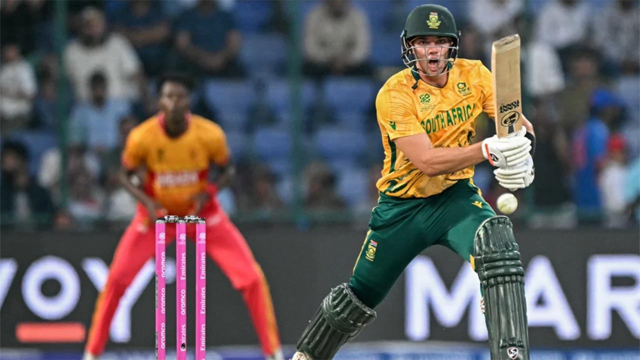 பந்துவீச்சில் தென்னாப்பிரிக்க அணி சார்பில் குவேனா மபாக்கா மற்றும் கோர்பின் போஷ் ஆகியோர் தலா 2 விக்கெட்டுகளை வீழ்த்தினர்.