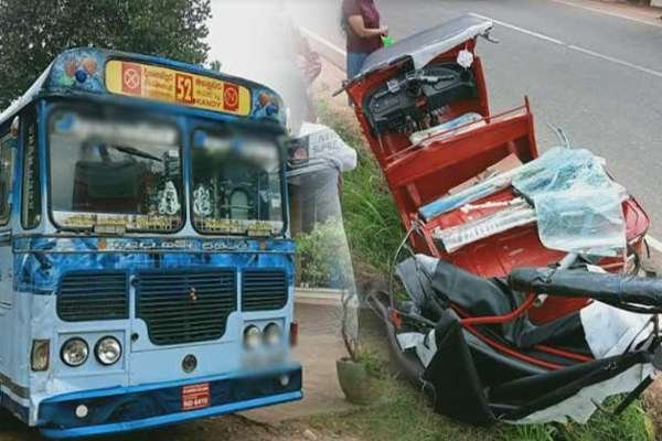வத்தேகமவில் இருந்து அனுராதபுரம் நோக்கி பயணித்த முச்சக்கர வண்டி, தம்புள்ளையில் இருந்து கண்டி நோக்கி பயணித்த பேருந்துடன் நேருக்கு நேர் மோதி விபத்துக்குள்ளானது.