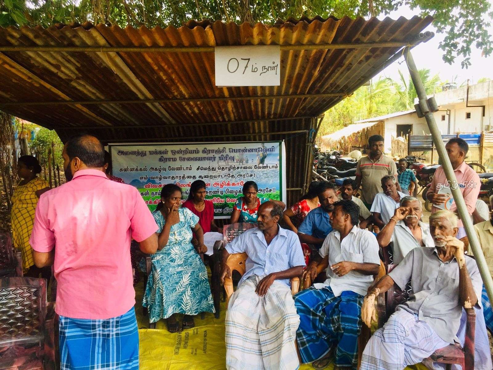 கிளிநொச்சி - பூநகரி, பொன்னாவெளியில் சீமெந்து தொழிற்சாலைக்கு எதிராக நடத்தும் சுழற்சி முறையிலான கவனயீர்ப்பு போராட்டமானது 07ஆவது நாளாக தொடர்ந்து முன்னெடுக்கப்பட்டு வருகின்றது.