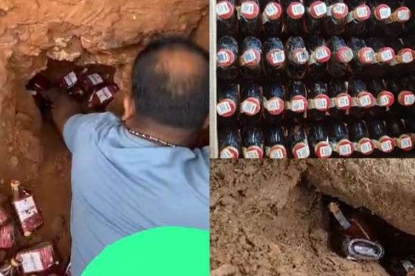 யாழில் நிலத்துக்குள் கீழ் பதுக்கப்பட்டிருந்த சாராய போத்தல்கள்; அதிர்ச்சியில் பொலிஸார்.