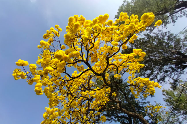 மரத்தில் இலைகள் என்பது முற்றாக இல்லாமல் போய் மரம் முழுவதும் மஞ்சள் நிற பூக்களே காணப்படுகிறது.
