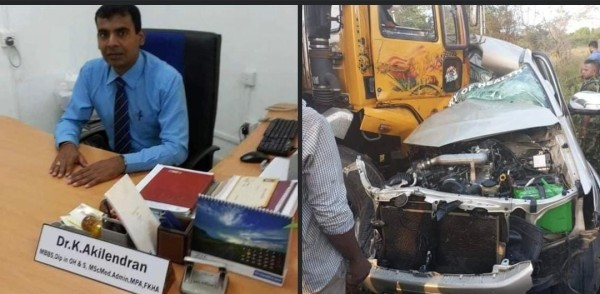 இந்த விபத்தில் முல்லைத்தீவு பிராந்திய சுகாதார சேவைகள் பணிப்பாளர் அகிலேந்திரன் படுகாயமடைந்து வைத்தியசாலையில் அனுமதிக்கப்பட்ட நிலையில் சிகிச்சை பலனின்றி உயிரிழந்துள்ளார்