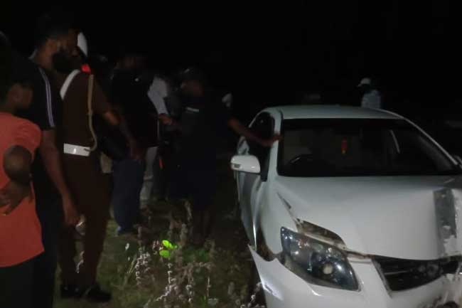 அதிவேகமாக பயணித்த கார் பூந்தோட்டம், பெரியார்குளம் பகுதியில் வீதியின் கரையில் இருந்த மின்சார கம்பத்துடன் மோதி நின்றது.