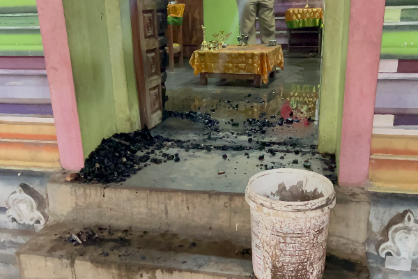 இன்று காலை ஆலயத்திற்கு வந்த பெண்ணொருவர், ஆலயத்தினுள் பெருமளவு புகை மூட்டம் காணப்பட்டத்தால் அச்சத்தில் அயலவர்களை அழைத்துள்ளார். அதனை தொடர்ந்து பொலிஸாரும் சம்பவ இடத்திற்கு வருகை தந்திருந்தனர்.