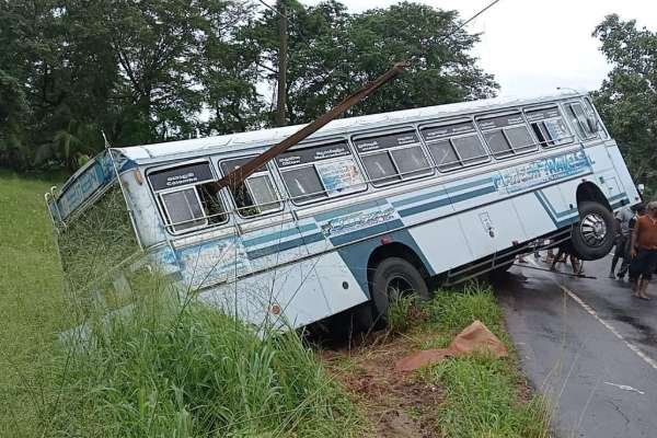 கொழும்பில் இருந்து யாழ்ப்பாணம் நோக்கி வந்து கொண்டிருந்த தனியார் பேருந்து ஒன்று வீதியை விட்டு விலகி விபத்துக்குள்ளானது.