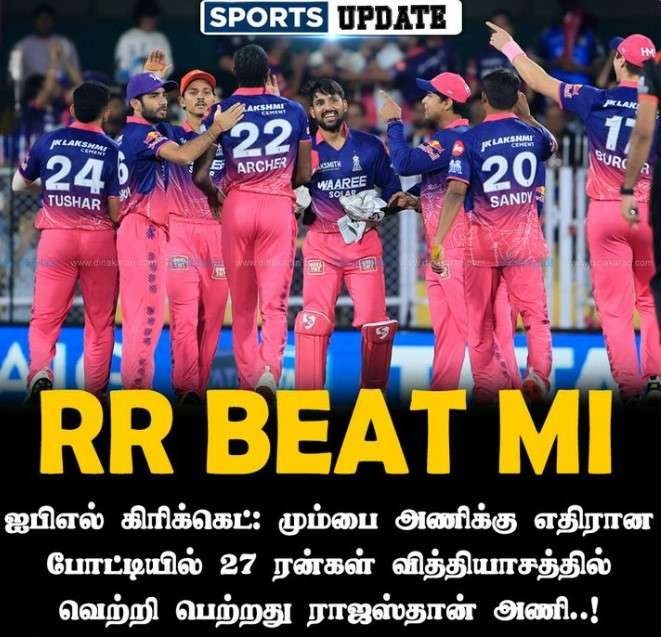 ஐபிஎல் கிரிக்கெட்: மும்பை அணிக்கு எதிரான போட்டியில் ராஜஸ்தான் அணி வெற்றி..!